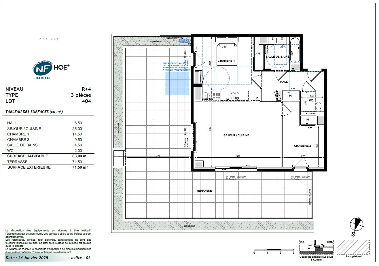 New elegant development on the hills of Antibes, just 5 minutes driving distance to the centre of town and the sandy beaches. Beautiful top floor off-plan 2 bedroom 1 bathroom apartment available with access to a vast West and South facing 71m2 angle terrace with views over the hill. Parking available. 20 minutes to Nice airport by car. Low French stamp duty. Provisional delivery in December 2025.