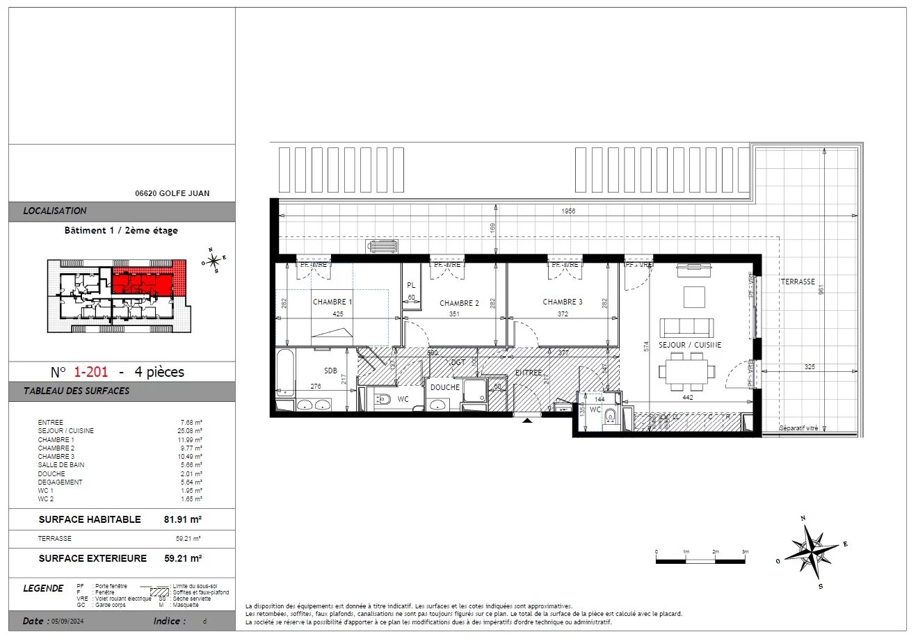 Between Cannes and Nice, minutes to Antibes and the lovely sandy beaches of Juan les Pins, elegant new development in sought after residential area surrounded by villas and apartments. 3 Bedroom apartments available on the 2nd & top floors with access to vast terraces. Parking included. 20 mins to Nice airport by car. Communal pool. Low French stamp duty. Provisional delivery from September 2026.