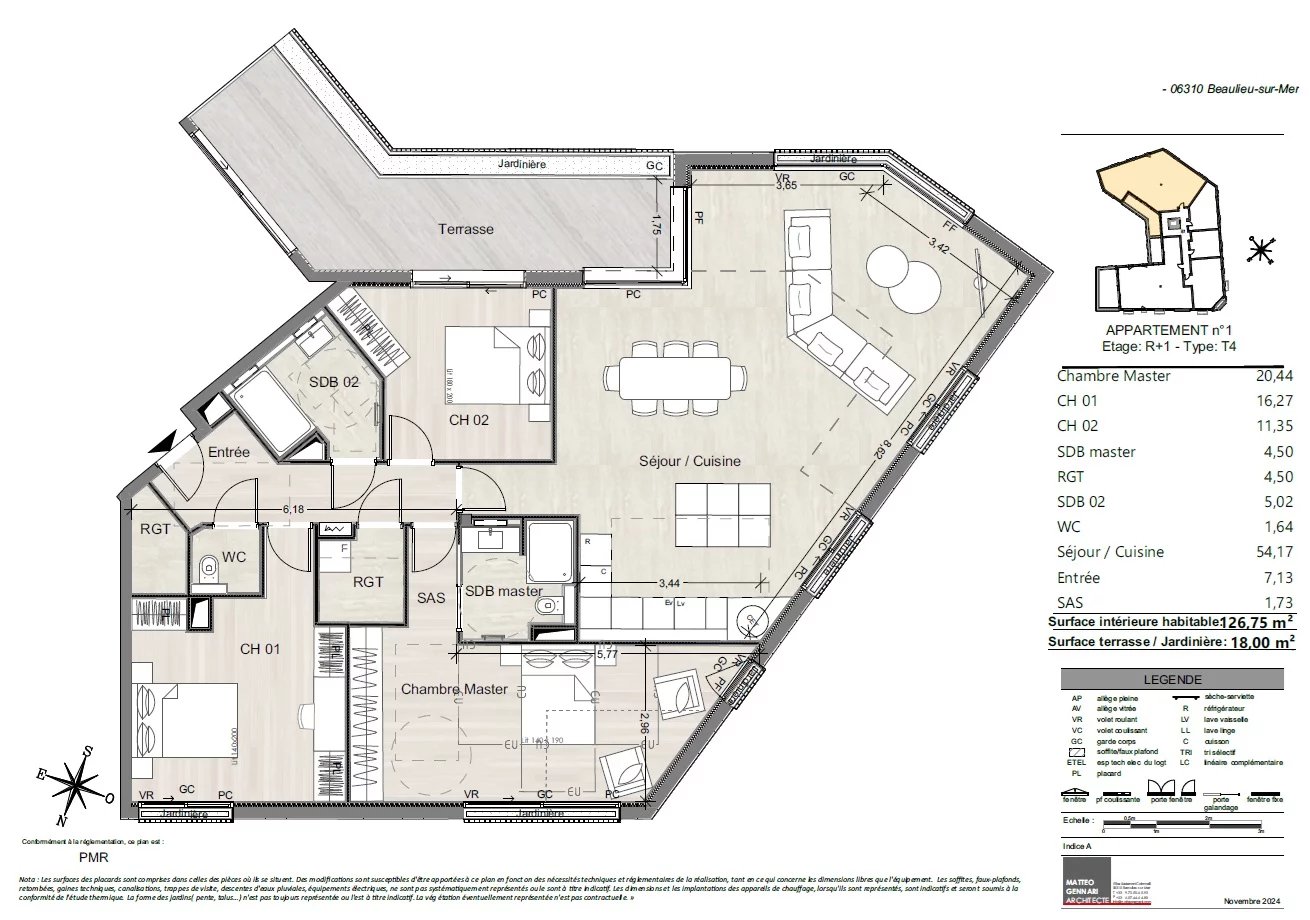 Rare in the centre of Beaulieu-sur-Mer, luxury new development with just 9 apartments, an ideal pied-a-terre and rental investment within walking distance to everything. High Specifications include air-conditioning, parquet floors, parking, bike storage. Beautiful 3 bedroom 2 bathroom 1st floor apartment available with 126m2 of living area and a South West facing terrace. 25 minutes to Nice airport by car. Parking included. Low French stamp duty. Provisional delivery in September 2027.